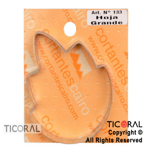 Cortante con forma de hoja grande. Material: hojalata. Los cortantes son herramientas ideales para repostería, ya que permiten realizar decoraciones o crear diferentes diseños. Se utilizan sobre todo tipo de masas como pastillaje, fondant, pastas de goma, mazapán, etc. o en porcelana fría.