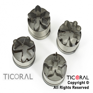 Cortante con forma de mini flores. Pack por 4 unidades de diferentes tamaños.. Material: hojalata. Los cortantes son ideales para realizar decoraciones y crear todo tipo de diseños. Se utiliza en masas como pastillaje, fondant, pastas de goma, mazapán, en galletitas o para realizar adornos en porcelana fría.