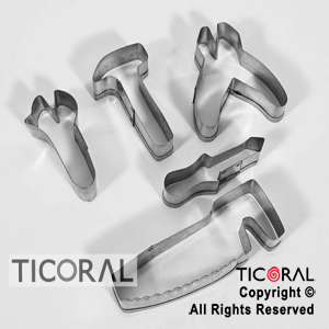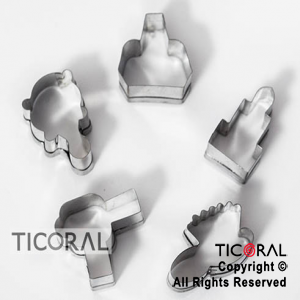 Cortante con forma de juego de herramientas. Material: hojalata. Los cortantes son herramientas fundamentales de repostería, son ideales para realizar decoraciones y crear todo tipo de diseños. Se utilizan en masas como pastillaje, fondant, pastas de goma, mazapán, en galletitas o para realizar adornos de porcelana fría.