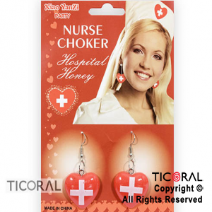 Aritos, aros de enfermera con un corazon con la cruz en blanco. Ideales como accesorios para disfraces, cumpleaños, carnavales carioca o tandas temáticas.