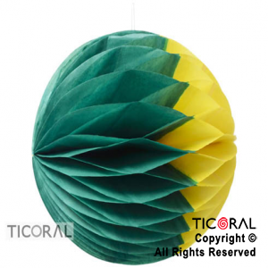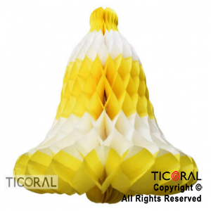 Adorno de papel cartulina para decoración de fiestas. Tiene forma de rosetas. Color: amarillo. Pack de 6 unidades. Modo de uso: abrir los cartones hacia ambos lados, haciendo coincidir los extremos y pegarlos entre sí (cada cartón tiene pegatinas). Colgar la figura, mediante un cordón ubicado en la parte superior del adorno. Estos adornos están formados mediante la técnica Origami, que consiste en elaborar con papel figuras tridimensionales con relieve.