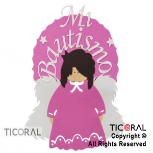 Adorno para Bautismo. Es un cartel con un ángel. Material: goma eva. Color: rosa. Medida: 29 cm. de largo. Ideal para decoración de tortas, de centros de mesa o mesas de souvenirs.
