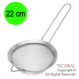 Colador de alambre con manija. Medida: 22 cm. de diámetro. No se oxida.
