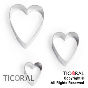 Cortantes de acero inoxidable con forma de corazon. Contiene 3 unidades. Medidas: 6.5cm, 5cm y 3,5 cm de ancho cada corazoncito.