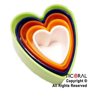 Juego de cortantes y moldecitos plásticos con forma de Corazón. Incluye 5 cortantes plásticos de distintos tamaños. Tienen 3cm de alto, y las medidas varian desde 9 cm de díametro hasta el mas chico de 4 cm. Se utilizan para cortar masas y pastas. Los cortantes son herramientas fundamentales de repostería, son ideales para realizar decoraciones y crear todo tipo de diseños. Se utilizan en masas como pastillaje, fondant, pastas de goma, mazapán, en galletitas o para realizar adornos de porcelana fría.