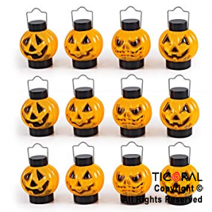 Farol de decoracion de Halloween para estante o mesa con vela.