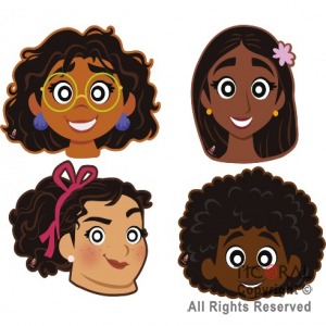 Antifaz con diseño de "encanto". Material: cartón. Medidas: 23 cm. x 7 cm. Pack de 10 unidades. Son para cumpleaños de niños (se reparten en cualquier momento de la fiesta o como souvenir). Pueden combinarse con otros productos de la línea de "encanto".