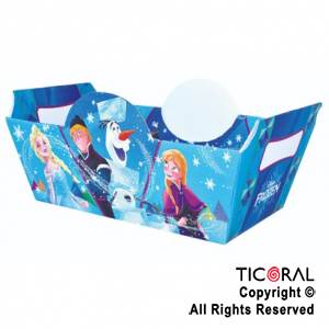 Recipiente de carton laminado con estampa de "Frozen" x 6 unidades, practica y facil de armar. Mide: 11cm de alto x 12cm de diametro. Se pueden reemplazar los pochoclos por cualquier golosina que les guste a los niños.