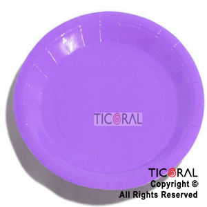 Plato redondo descartable. Color: violeta. Material: cartón resistente. Medida: 23 cm. Pack de 8 unidades. Disponible en diferentes colores. Puede combinarse con otros productos de la misma línea.