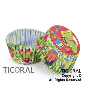 Pirotines con diseño de"Sapo pepe". Es un complemento de decoración para cumpleaños de niños. Puede combinarse con otros productos de la línea.