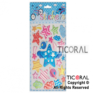 Divertidos stickers con relieves. Medida: 17,5 cm. x 13 cm. Ideales para regalar dentro de la bolsita de cumpleaños.