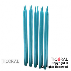 Velas de color celeste. Medida: 10,5 cm. Pack de 10 unidades. Hay una amplia gama de colores. se pueden utilizar para decorar (centros de mesas, salones, etc.) o en la ceremonia de velas de un cumpleaños de quince.