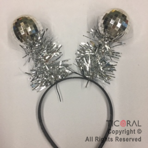 VINCHA BOLA BOLICHE ESPEJADA PLATA CON LAME HS7839 x 1