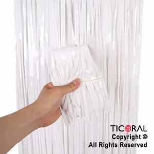 Cortina que se utiliza para ambientación de fiestas y eventos. De flecos largos. Medida: 1 metro de ancho por 2 mts de alto.