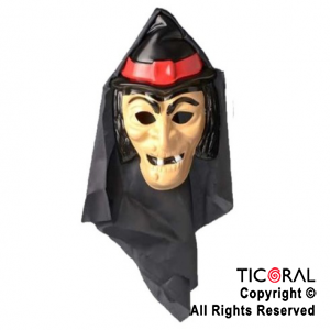 Máscara de bruja con sombrero con capucha. Material: plástico y tela. La cara de la bruja es verde con un sombrero negro y tiene una capucha quedando toda la cabeza cubierta. Estos tipos de máscaras están compuestas por un plástico cómodo y resistente, que no se deforma con facilidad. Ideales para el carnaval carioca, cumpleaños infantiles, tandas temáticas de Halloween, como accesorio para disfraces y para todo tipo de festejos.