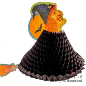 Adorno de papel barrilete para decoración de fiestas de halloween. Tiene forma de rosetón . Modo de uso: abrir los cartones hacia ambos lados, haciendo coincidir los extremos y pegarlos entre sí (cada cartón tiene pegatinas). Colgar la figura, mediante un cordón ubicado en la parte superior del adorno. Medida: 180 cm. de contorno x 70 cm. de largo.
