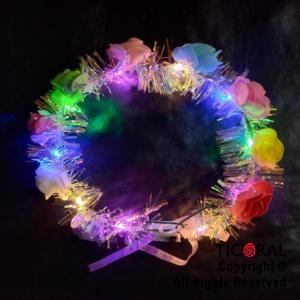 VINCHA CORONA FLORES MULTICOLOR LUMINOSO LED X 10